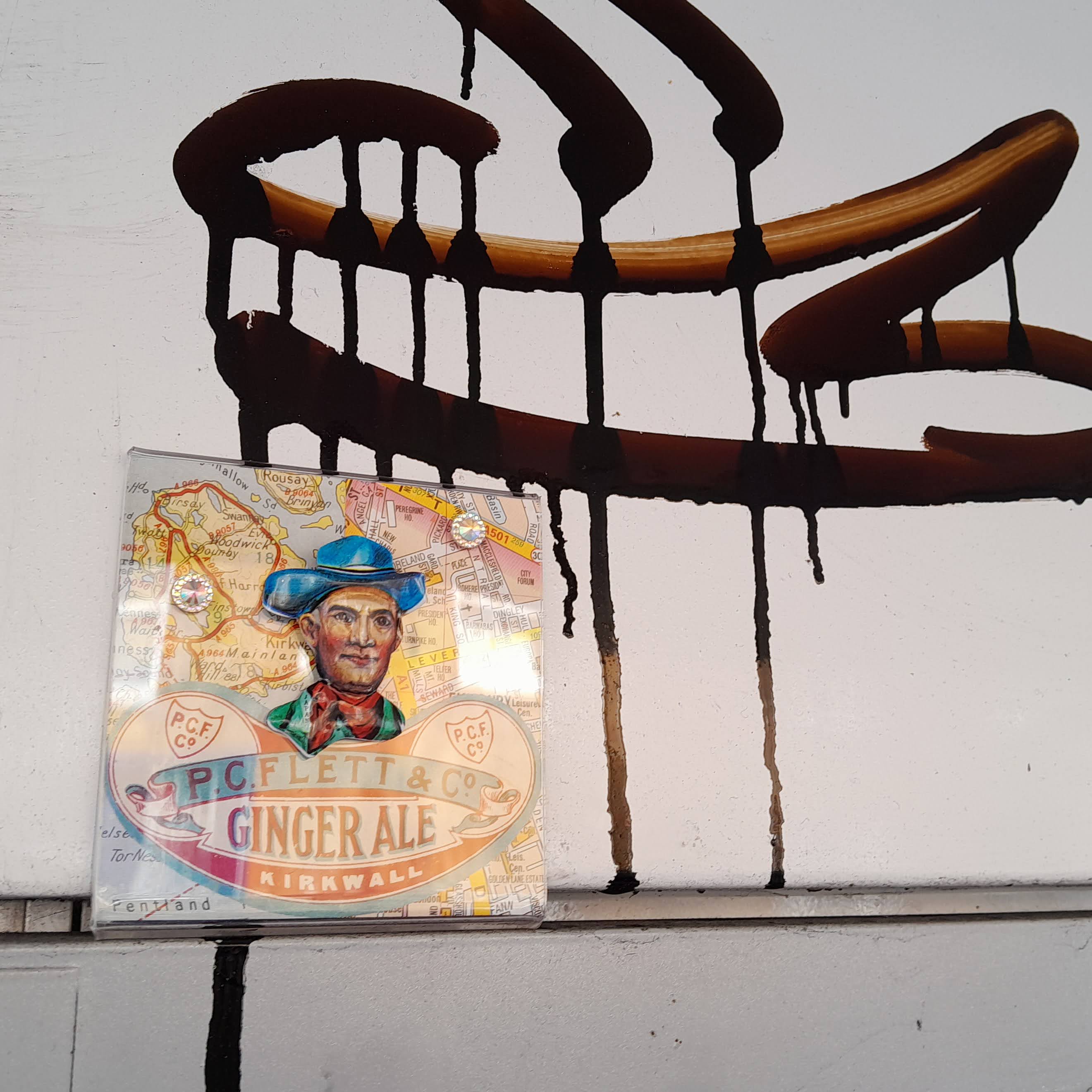 Chris Brown's wandering cowboy waits at a bus stop in Hampton Hill, he doesn't dream of the American frontier but of travelling to Kirkwall, the home of the finest ginger ale in Scotland. Natalie Low composes a ditty for our rhinestone hero, or should it be for our bovine hero. Read it below, or if you are in good voice, sing it out loud.